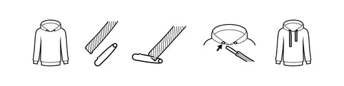 Wir empfehlen Bänder mit 130 cm Länge für alle unsere Hoodies ab Größe M. Für unsere No-Hoodies und unsere Hoodies bis Größe S bieten wir Bänder mit 120 cm Länge an.